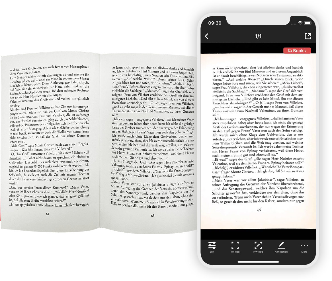 Say goodbye to curved distortion when scanning books with your phone. The app comes with a built-in core book flattening algorithm that automatically detects the edge contours of book pages during scanning and intelligently flattens them. Turn your phone into a true scanner.