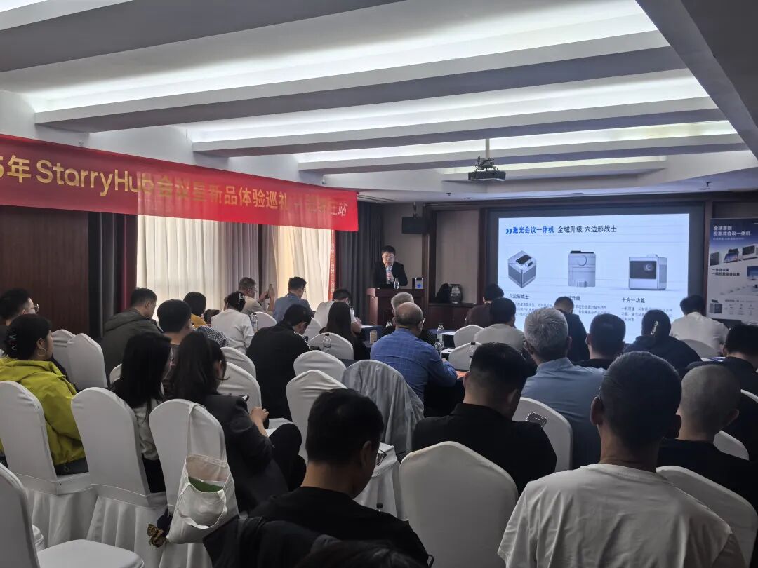 成者会议星合伙人、全国市场和销售业务负责人武琦在巡讲现场做了主题演讲,并与现场嘉宾及客户进行了深入交流。会议星广西省代广西顶科信息技术有限公司、河北省代石家庄冀昂网络科技有限公司、湖南省代湖南南佳信息科技有限公司等各地省级总代理负责人均莅临现场,发表了主题演讲,对成者会议星系列新品的未来充满信心,会继续联合合作伙伴一同开拓市场,持续为各行业客户带来新的价值和体验。
